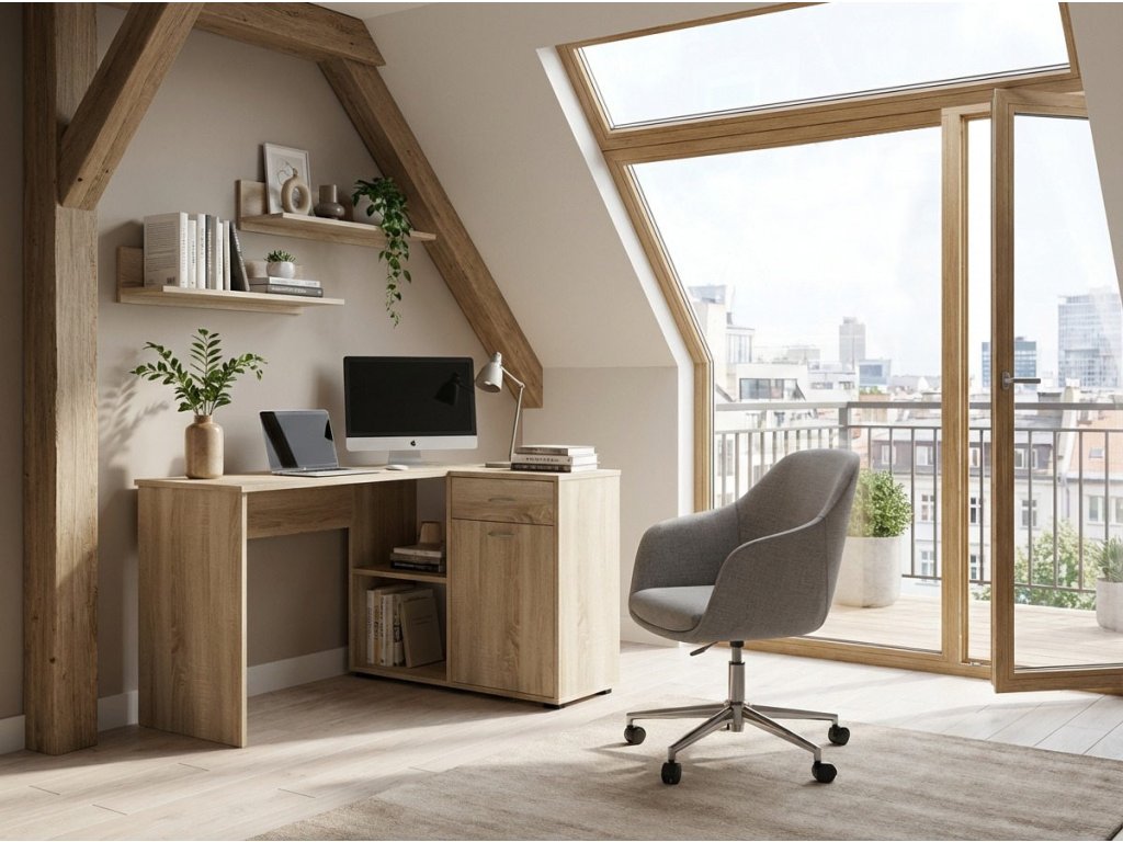 Chápeme, že každý má své specifické potřeby, pokud jde o ukládání pracovních potřeb. Stůl Alfa 305 skvěle využívá veškerý prosto na uložení věcí. Na jedné straně praktickou skříňku s dvířky a zásuvkou, kde můžete uschovat všechny důležité dokumenty a pomůcky, které chcete mít po ruce, ale ne na očích. Rohy bývají často nevyužité, ne ovšem u stolu Alfa 305, kde najdete prostorné police.