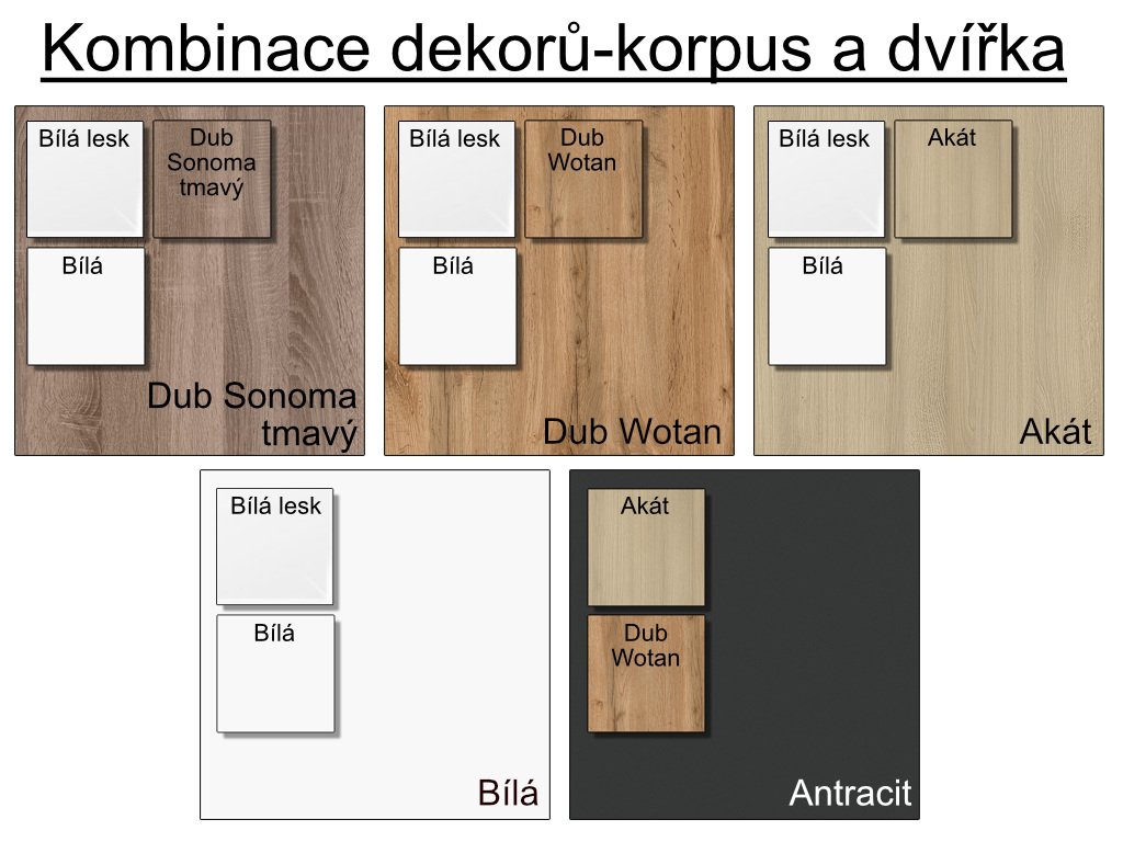 | ? Dekor: | akát, antracit, bílá, dub sonoma, dub wotan |