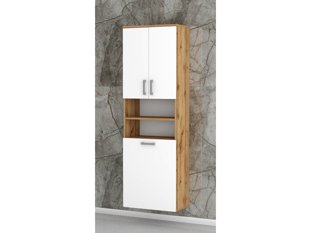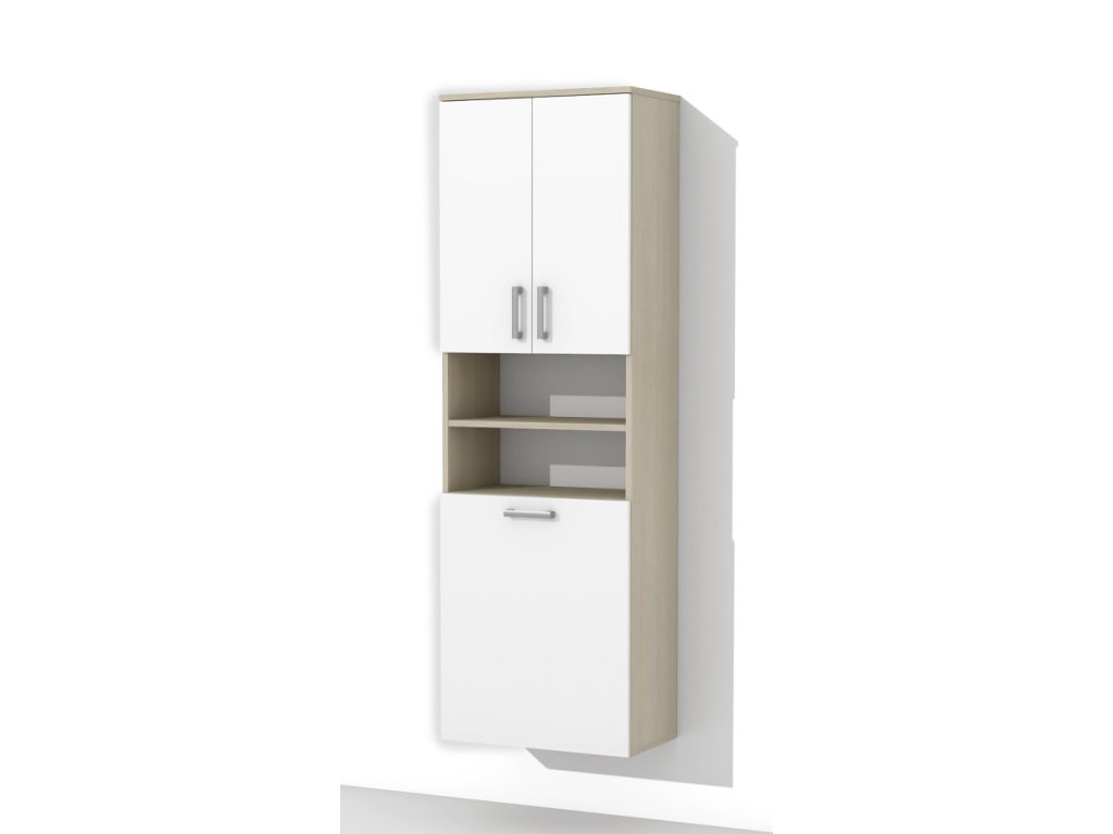 Sháníte praktickou skříňku do své koupelny a také koš na prádlo? Tato vysoká koupelnová skříňka splňuje oba požadavky a má dostatek úložného prostoru. Již si nemusíte kupovat samostatný koš na prádlo, ale budete ho mít součástí skříňky a ušetříte také místo v koupelně. Uvnitř skříňky jsou stavitelné police - můžete si je snížit nebo zvýšit. Tato vysoká koupelnová skříňka bude pasovat do každé koupelny.
