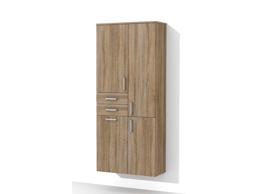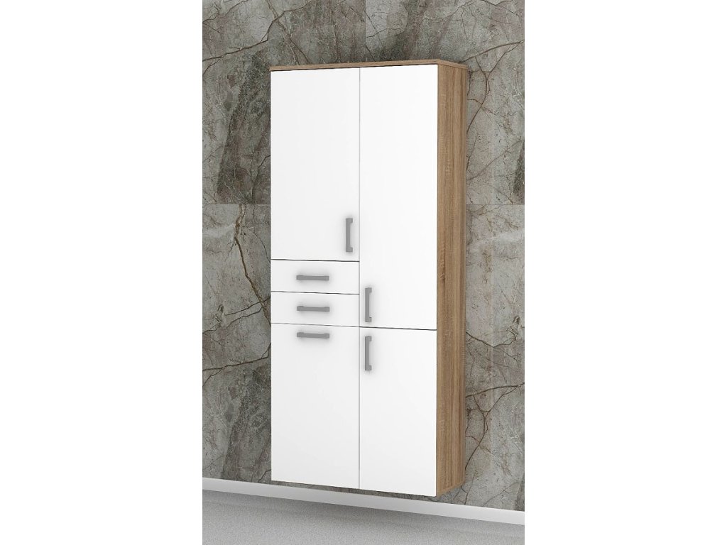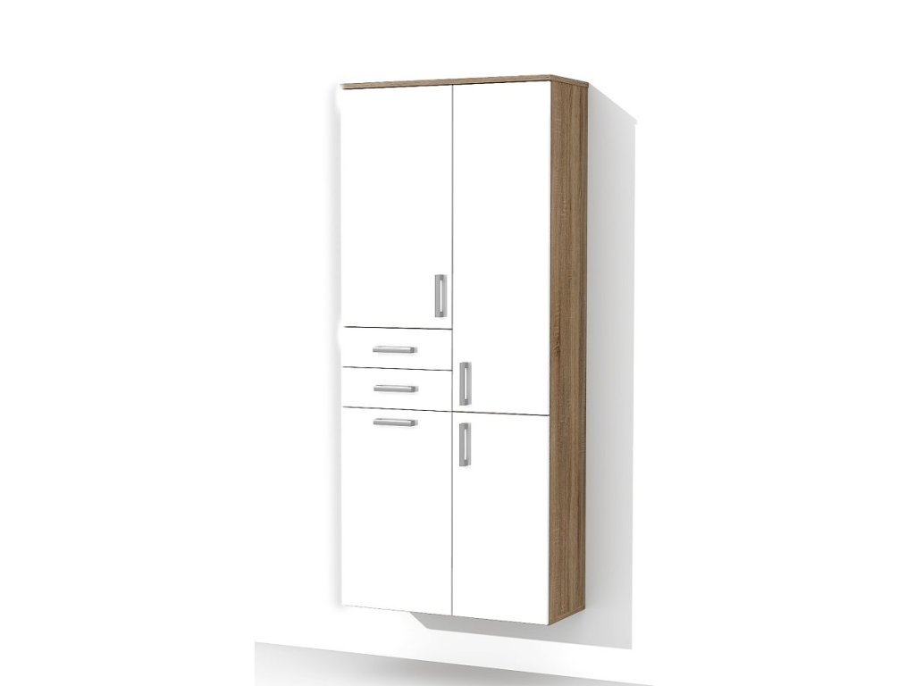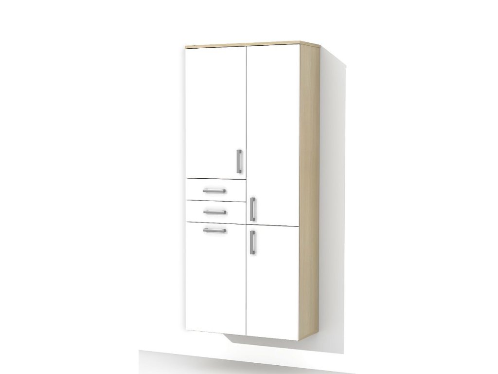 Sháníte praktickou skříňku do své koupelny? Tato vysoká koupelnová skříňka má dostatek úložného prostoru a navíc ve spodní části má výklopný koš na prádlo. Již si nemusíte kupovat samostatný koš, ale budete ho mít součástí skříňky, čímž ušetříte místo v koupelně. Velké množství úložného prostoru využijete na věci, které potřebujete mít po ruce a zároveň i na potřeby, které musí být schované za dvířky. Dvě zásuvky jsou ideální pro uložení nižších věcí, nebo drobností.