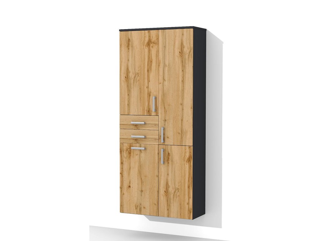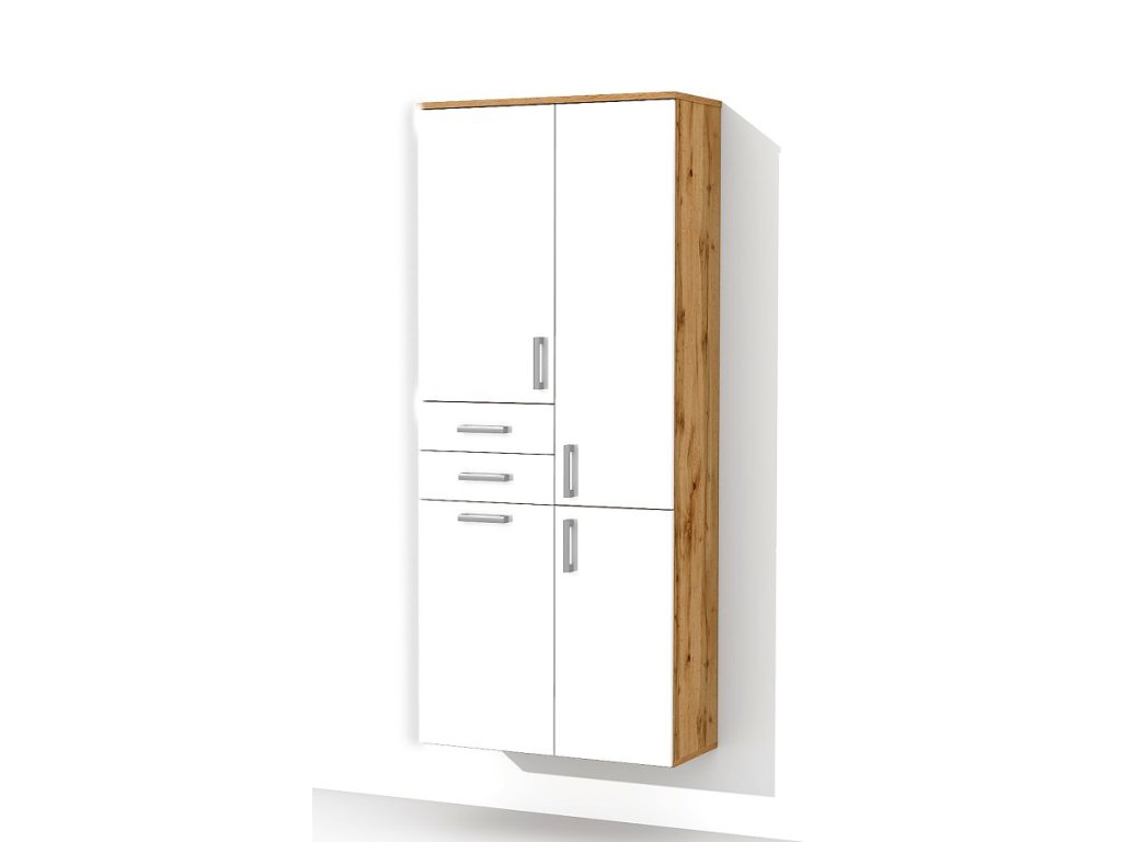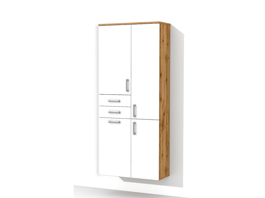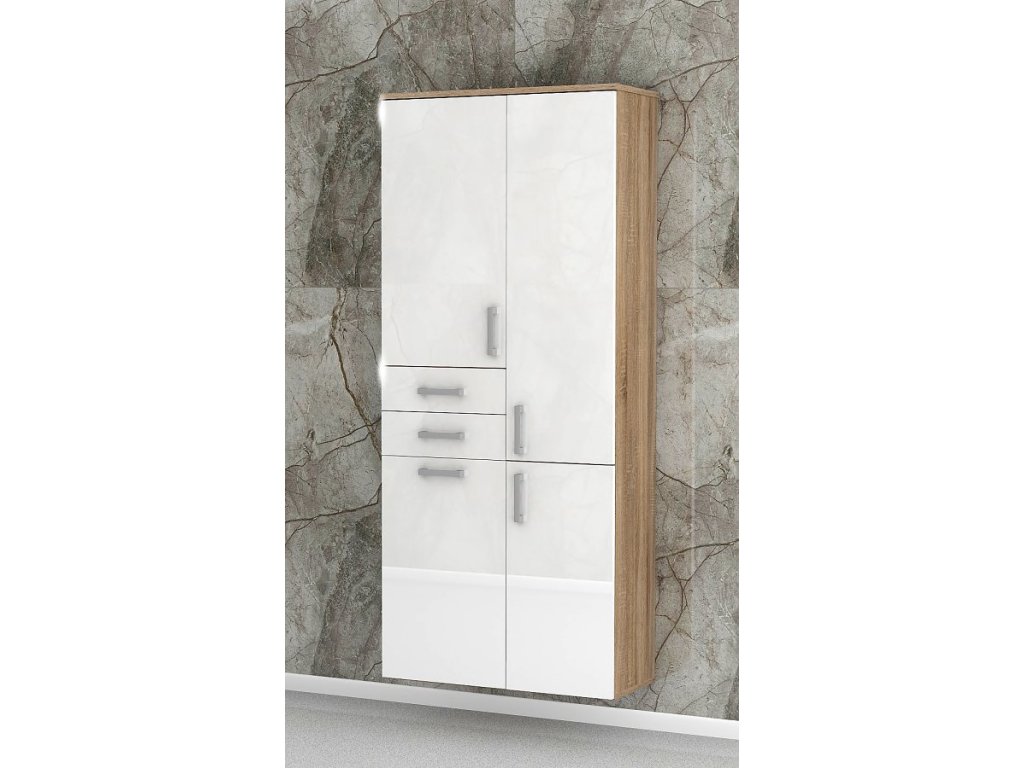 Sháníte praktickou skříňku do své koupelny? Tato vysoká koupelnová skříňka má dostatek úložného prostoru a navíc ve spodní části má výklopný koš na prádlo. Již si nemusíte kupovat samostatný koš, ale budete ho mít součástí skříňky, čímž ušetříte místo v koupelně. Velké množství úložného prostoru využijete na věci, které potřebujete mít po ruce a zároveň i na potřeby, které musí být schované za dvířky. Dvě zásuvky jsou ideální pro uložení nižších věcí, nebo drobností.