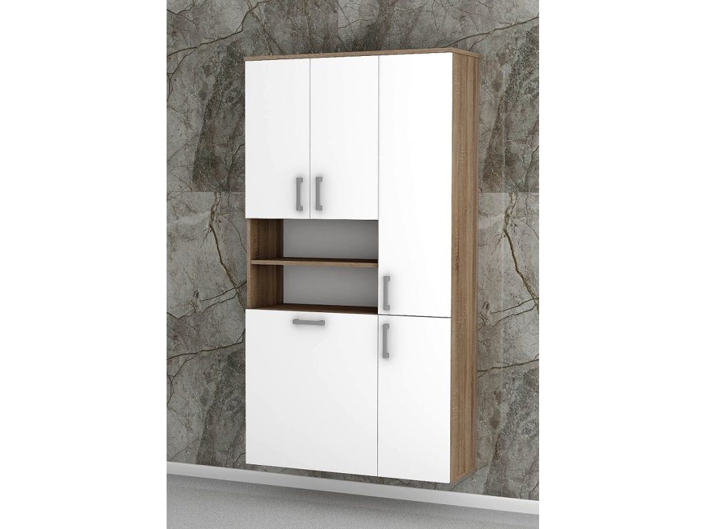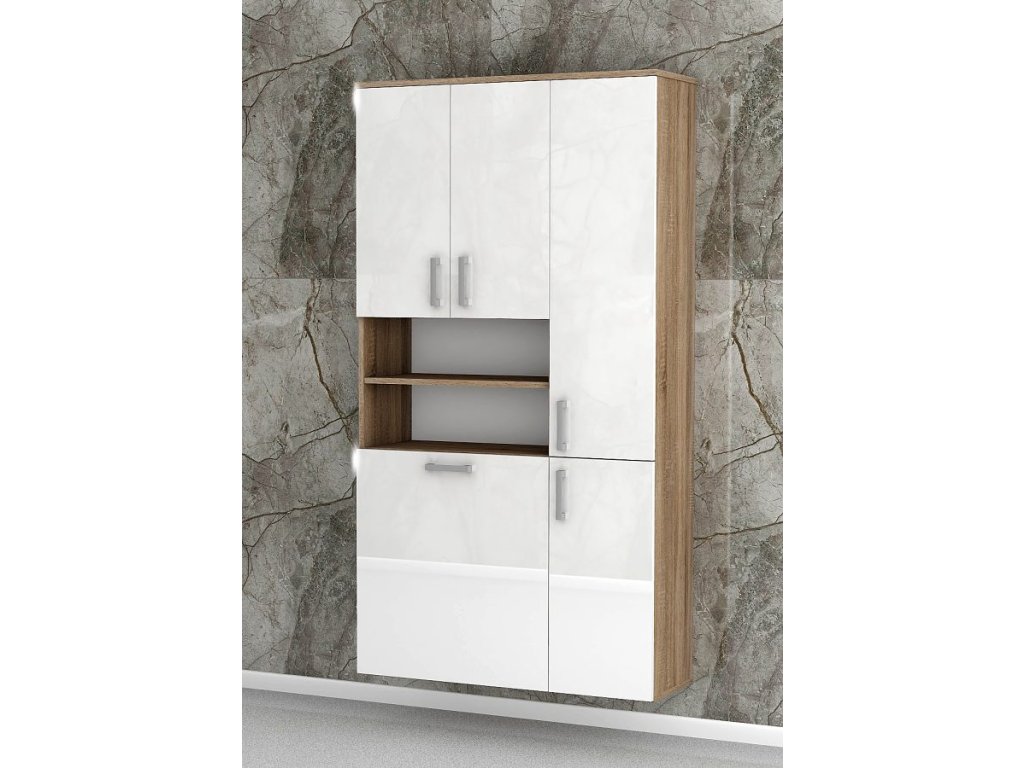 Sháníte praktickou skříňku do své koupelny? Tato vysoká koupelnová skříňka má dostatek úložného prostoru a navíc ve spodní části má výklopný koš na prádlo. Již si nemusíte kupovat samostatný koš, ale budete ho mít součástí skříňky, čímž ušetříte místo v koupelně. Velké množství úložného prostoru využijete na věci, které potřebujete mít po ruce a zároveň i na potřeby, které musí být schované za dvířky.