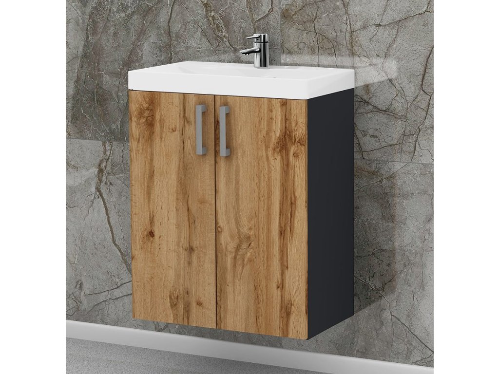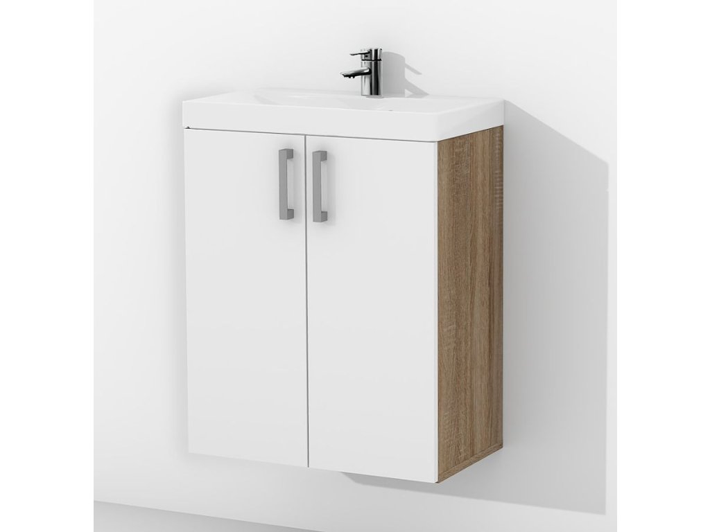 Součástí umyvadlové skříňky je také keramické umyvadlo, které dokonale padne a doplní design skříňky. Jeho rozměry jsou 60 x 45 x 16 cm (š x hl x v). Součástí je také sifon, silikonové těsnění, chromový uzávěr a vše potřebné.