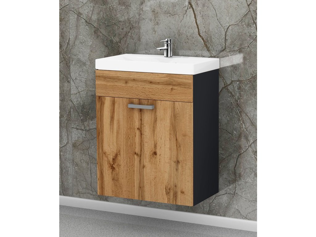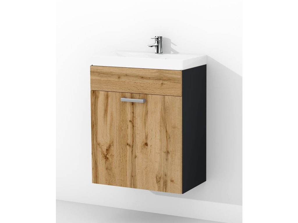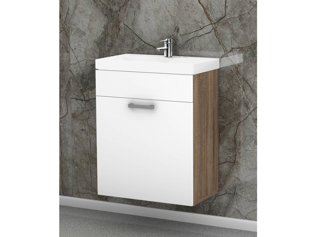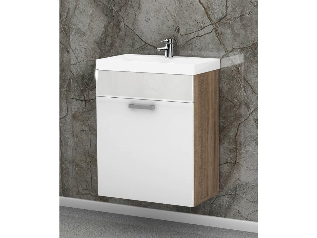 Součástí umyvadlové skříňky je také keramické umyvadlo, které dokonale padne a doplní design skříňky. Jeho rozměry jsou 60 x 45 x 16 cm (š x hl x v). Součástí je také sifon, silikonové těsnění, chromový uzávěr a vše potřebné.