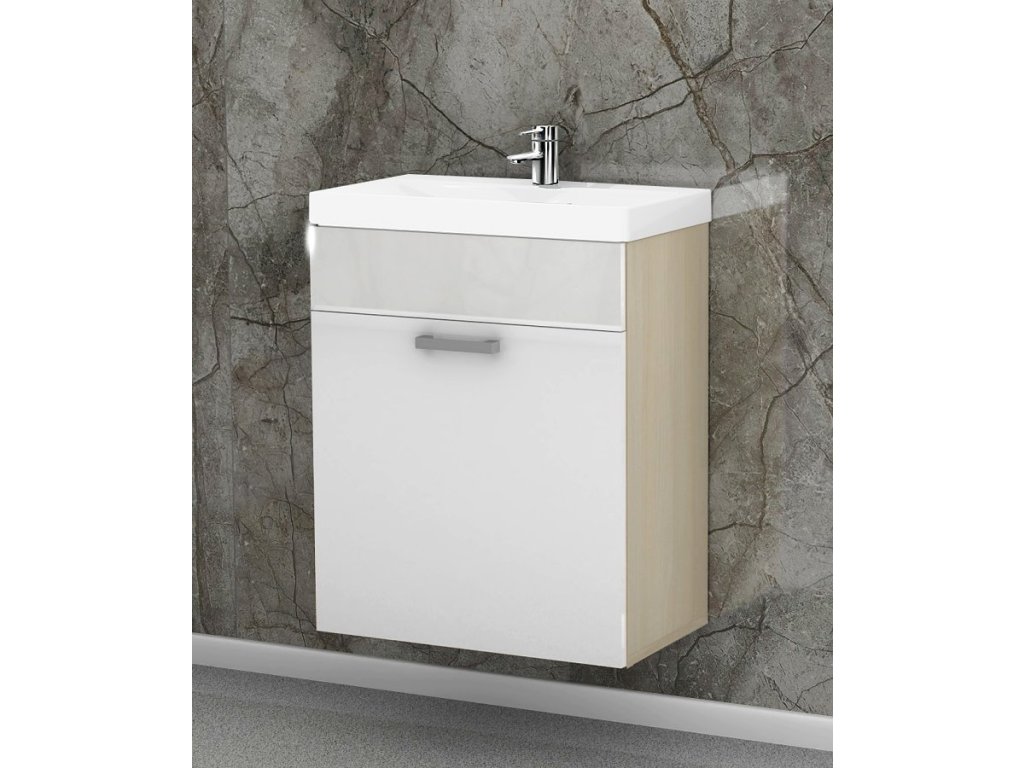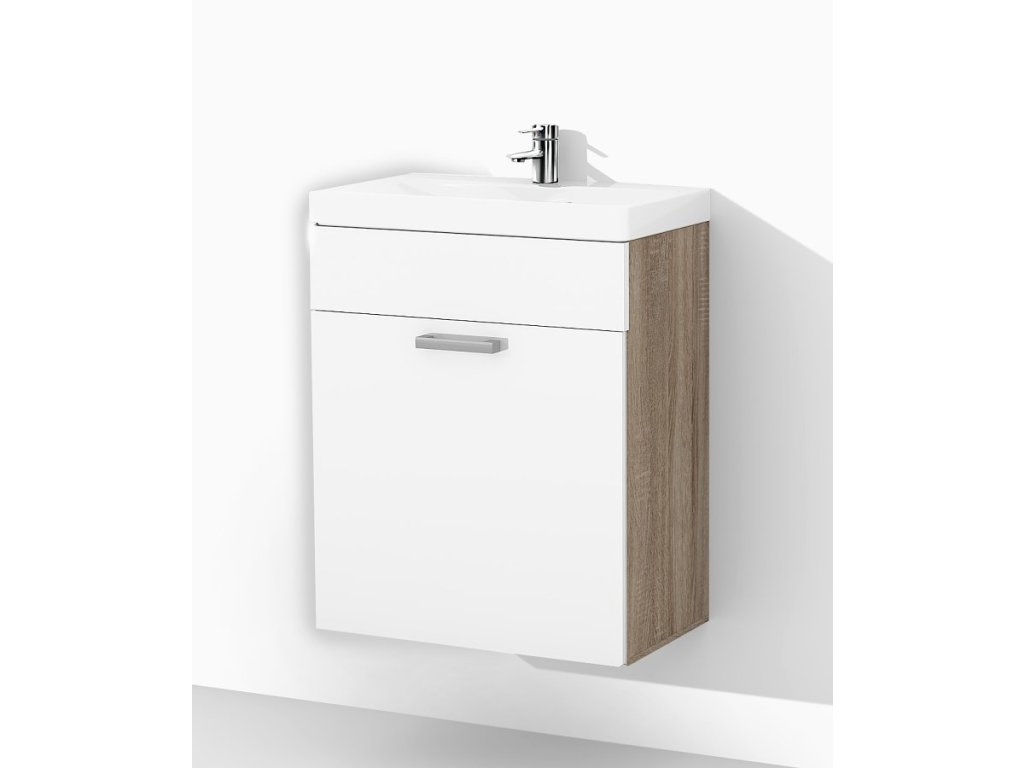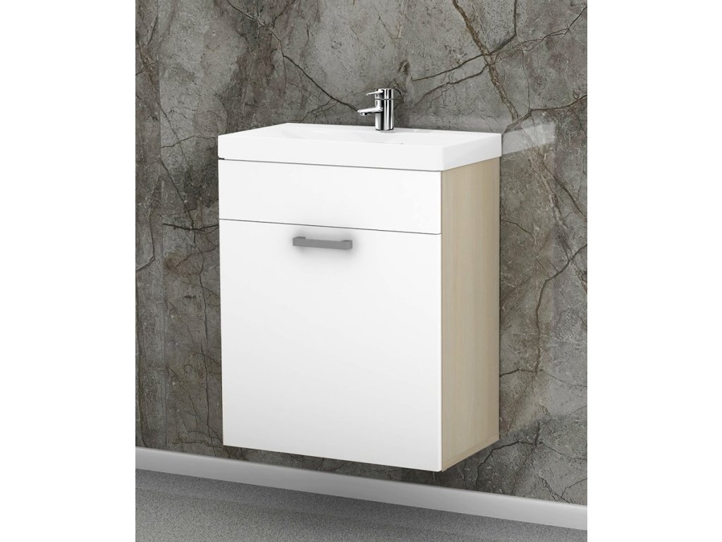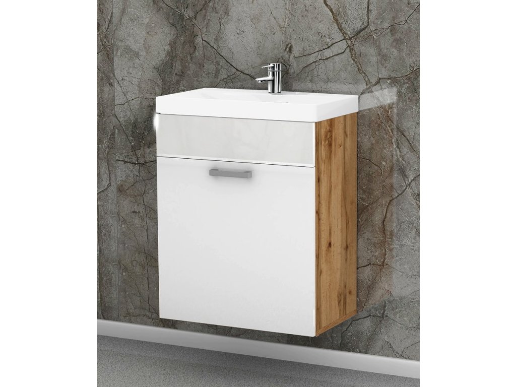 Součástí umyvadlové skříňky je také keramické umyvadlo, které dokonale padne a doplní design skříňky. Jeho rozměry jsou 60 x 45 x 16 cm (š x hl x v). Součástí je také sifon, silikonové těsnění, chromový uzávěr a vše potřebné.