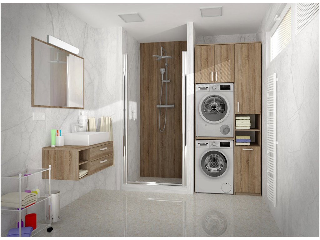 S naší závěsnou koupelnovou skříňkou budete mít všechno přehledně uspořádané a po ruce, kdykoliv to budete potřebovat. Díky chytrému designu s otevřenými policemi a velkou uzavřenou polici zůstane vaše kosmetika a ručníky vždy uspořádané a snadno dostupné.