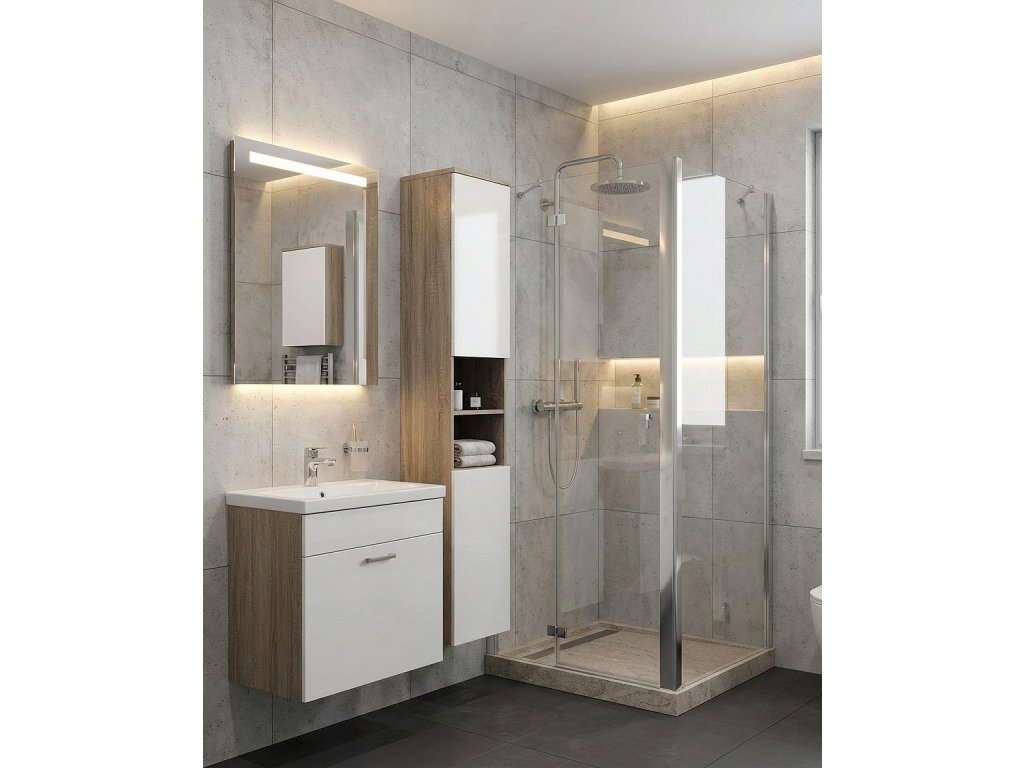 Tato koupelnová skříňka se zrcadlem spojuje praktičnost a užitečnost. Zrcadlo vám poslouží k úpravě zevnějšku a skříňka například k uložení věcí denních potřeb. Tato skříňka by neměla chybět nad žádným umyvadlem. Vysoký lesk na dvířkách dodá koupelně ten správný moderní vzhled.