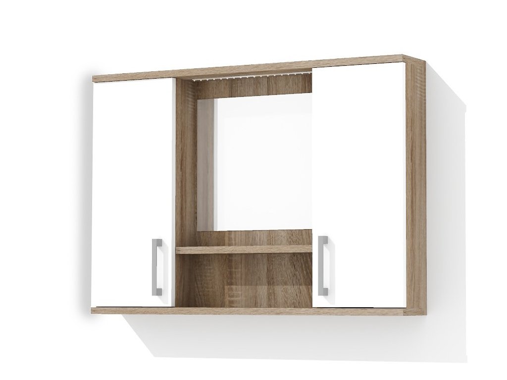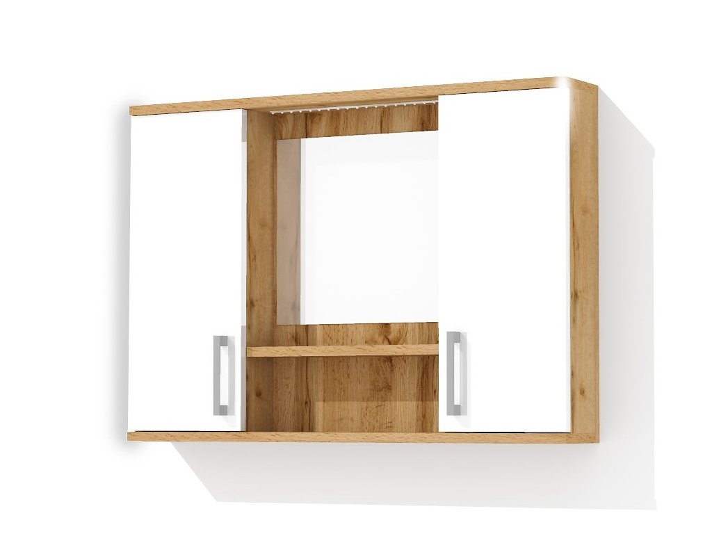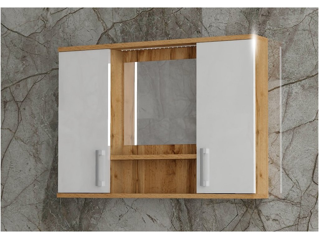 Závěsná koupelnová skříňka se zrcadlem, poličkou a LED osvětlením. Skříňka má dvoje dvířka se stavitelnými policemi a se stříbrnou úchytkou. Součástí LED osvětlení (230V/40W) je také trafo a kabely. Vypínač není součástí. Skříňka je určena k zavěšení na zeď a je vyrobena z lamina o tloušťce 18 mm. Barvu skříňky si můžete zvolit z mnoha barevných kombinací. Můžete si zvolit dvířka z lamina, nebo lisované MDF dvířka v bílé barvě s vysokým leskem, který propůjčí vaší koupelně elegantní vzhled. Na dvířkách v lesku je od výroby ochranná fólie proti poškození. Po sestavení fólii jednoduše odstraníte.