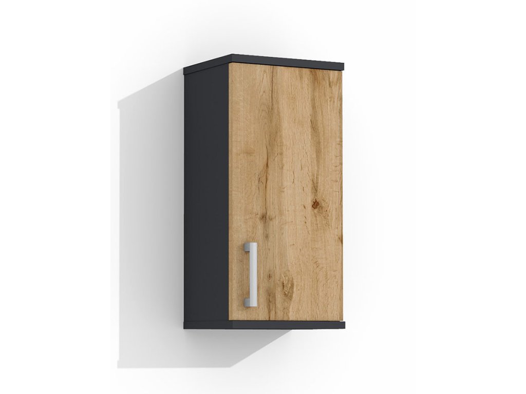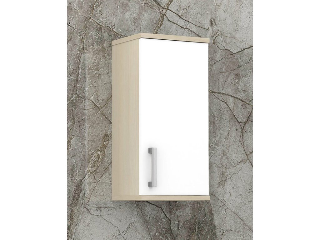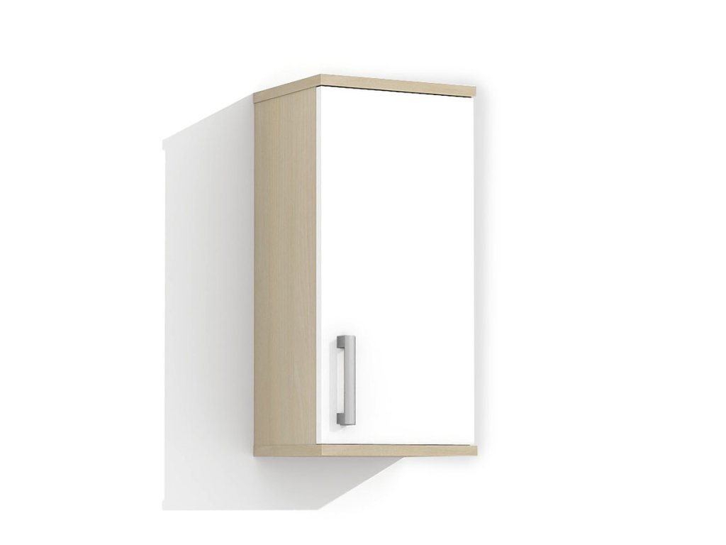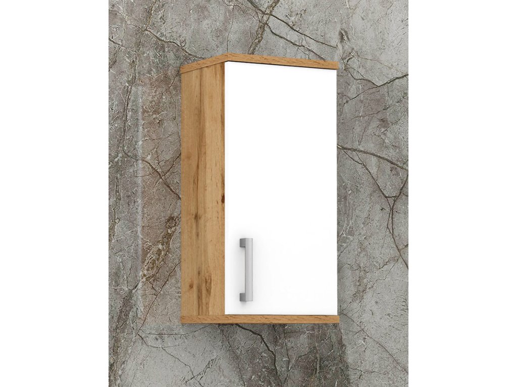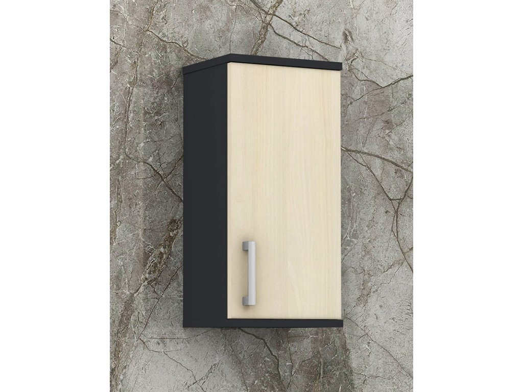 Skříňka je vyrobena z lamina o tloušťce 18 mm, má dvířka se stříbrnou, plastovou úchytkou. Uvnitř jsou dvě police, které slouží jako úložný prostor. Poličky ve skříňce si můžete nastavit sami podle velikosti umístěných věcí. Skříňka je určena k zavěšení na zeď.