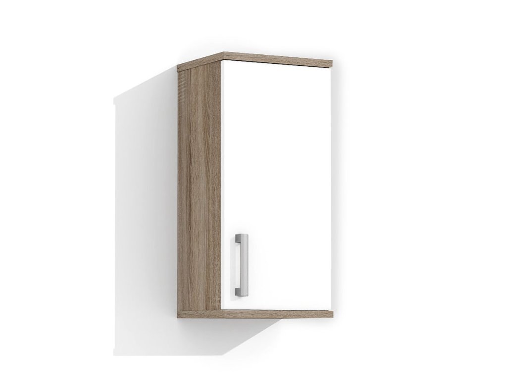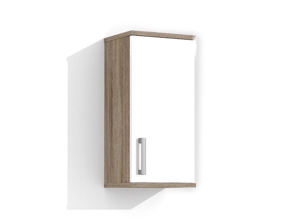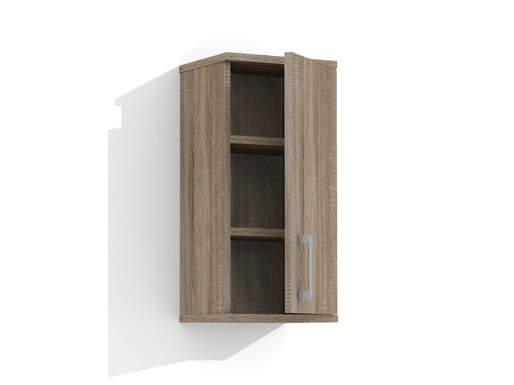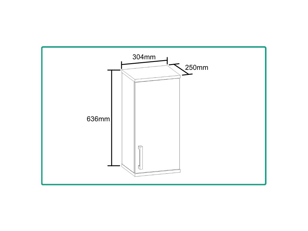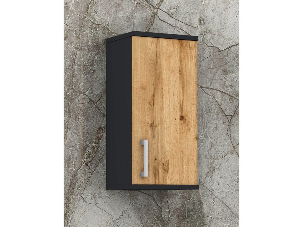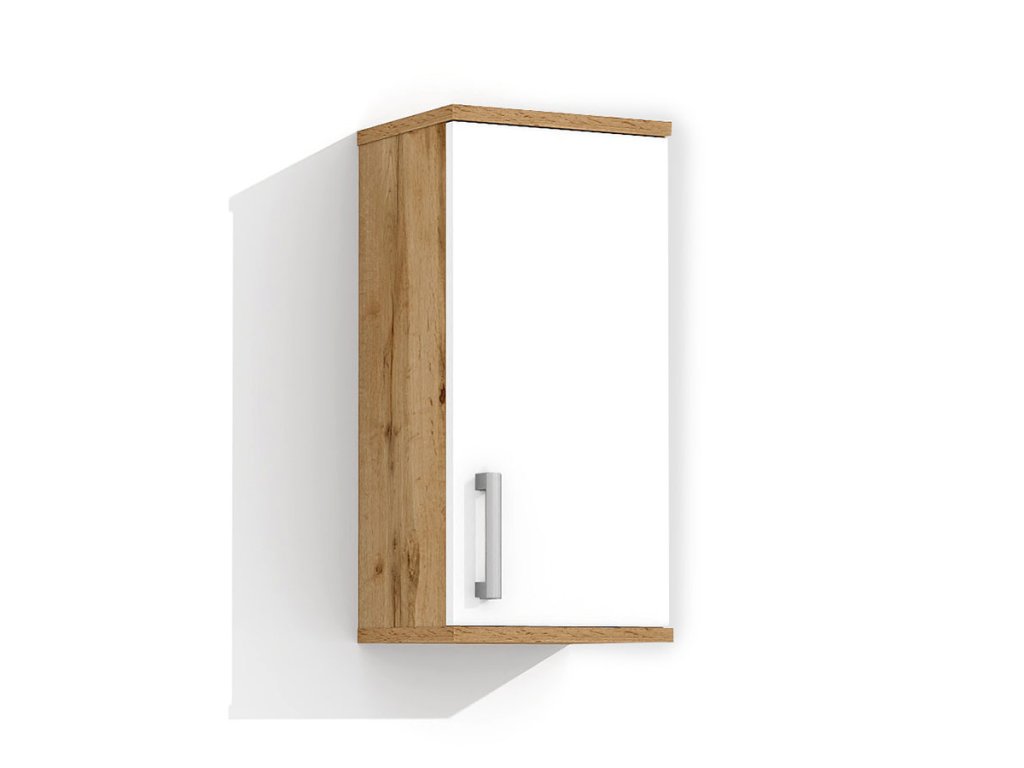 Skříňka je vyrobena z lamina o tloušťce 18 mm, má dvířka se stříbrnou, plastovou úchytkou. Uvnitř jsou dvě police, které slouží jako úložný prostor. Poličky ve skříňce si můžete nastavit sami podle velikosti umístěných věcí. Skříňka je určena k zavěšení na zeď.