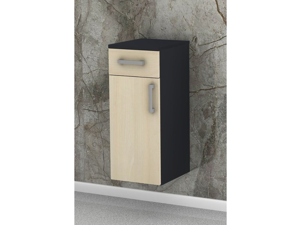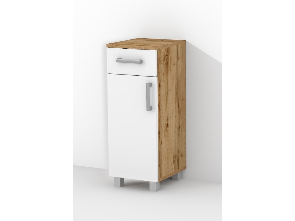 Skříňka je vyrobena z lamina o tloušťce 18 mm. Má jedny dvířka a jednu zásuvku se stříbrnou úchytkou, ta je umístěna na pevných pojezdech. Uvnitř skříňky je stavitelná police, která slouží jako úložný prostor. Poličku ve skříňce si můžete nastavit sami podle velikosti umístěných věcí.