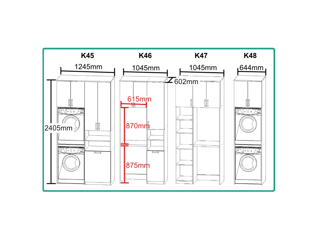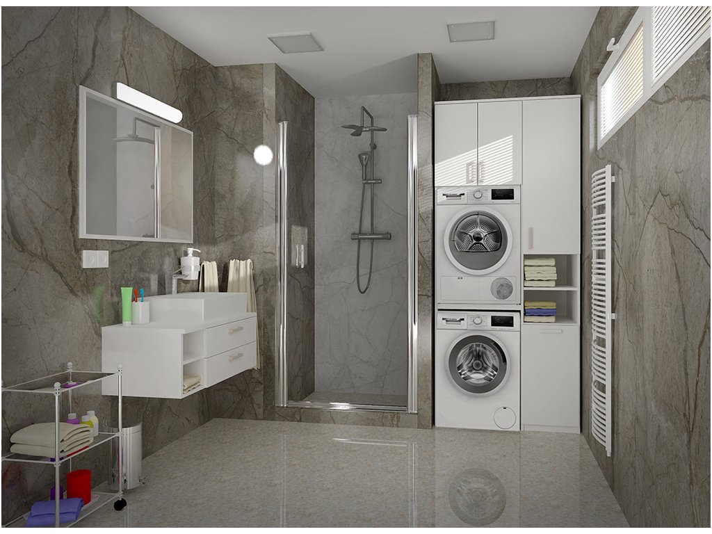 Vysoká koupelnová skříňka na pračku a sušičku K46