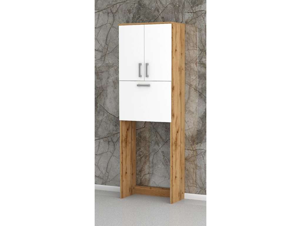 Vysoká koupelnová skříňka nabízí optimální využití prostoru nad pračkou, sušičkou či nad WC. Skříňka má dvoje dvířka se stříbrnými úchytkami. Uvnitř jsou stavitelné police pro všechny vaše věci. Dále má tato skříňka drátěný výklopný koš na prádlo nebo čisté ručníky. Vše potřebné si můžete schovat dovnitř a nebude se Vám nikde usazovat prach.