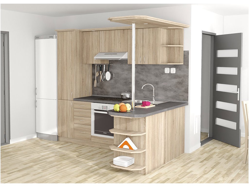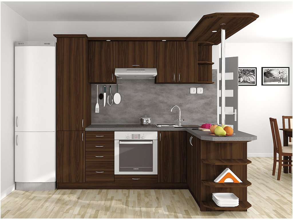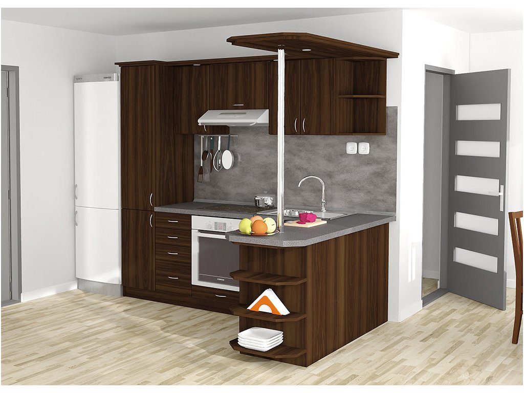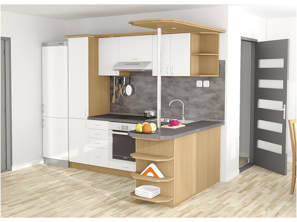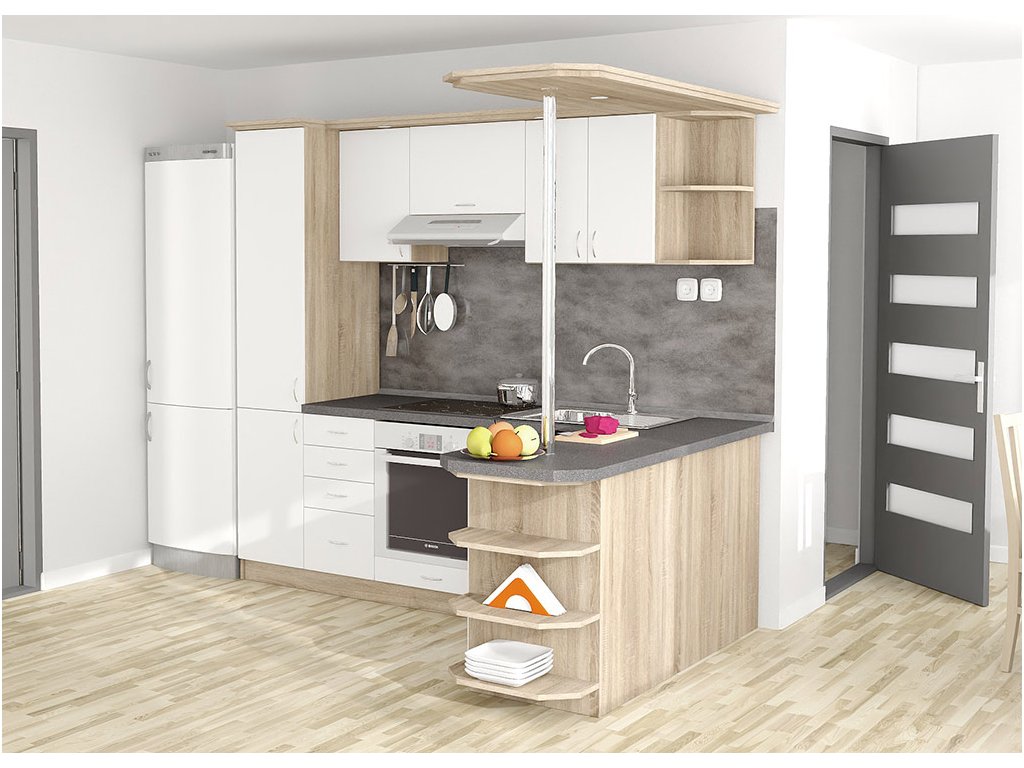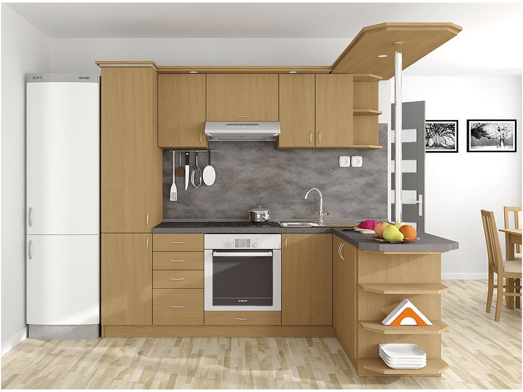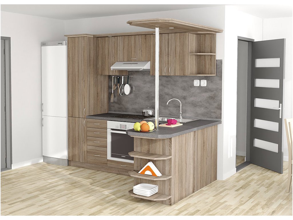 Jednotlivé skříňky jsou dodávány složené, vč. dvířek a úchytek. Snadná instalace, stačí je ustavit na místo. Závěsná lišta na horní skříňky je v ceně, stejně jako pracovní deska s těsnícími lištami a koncovkami. Vše připraveno, nařezáno a olepeno.