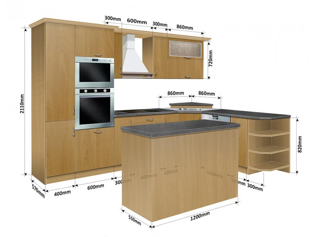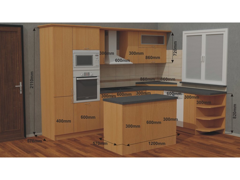 Podrobné rozměry kuchyně jsou uvedeny na ilustračním obrázku