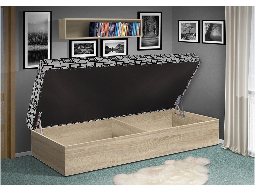 Pohodlná a praktická válenda Junior má lehací plochu 200x80 cm. Úložný prostor se rozkládá pod celou plochou válendy a poskytuje tak dostatečný prostor pro uložení ložního prádla či jiných předmětů. Součástí válendy nejsou čela, ale nabízíme také válendu Junior s čely. Nebo si prohlédněte naše čalouněné nástěnné panely a vytvořte si nevšední a pohodlný prostor váš pro spánek.