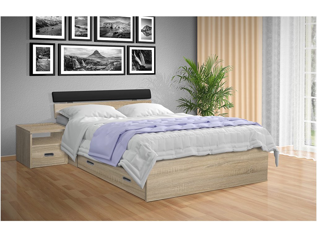 Součástí designu postele jsou praktické výsuvné zásuvky na obou stranách postele, které nabízí bohatý úložný prostor pro vaše lůžkoviny, sezónní oblečení nebo jakékoliv jiné předměty, které potřebujete mít po ruce a přitom udržet mimo očí. Další úložný prostor si můžete vytvořit díky nočním stolkům, které si u nás můžete vybrat z široké nabídky. Noční stolky nejsou součástí postele.