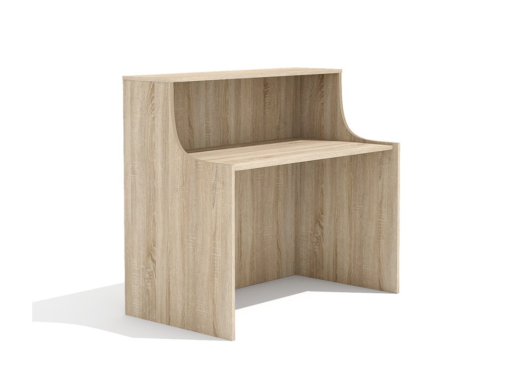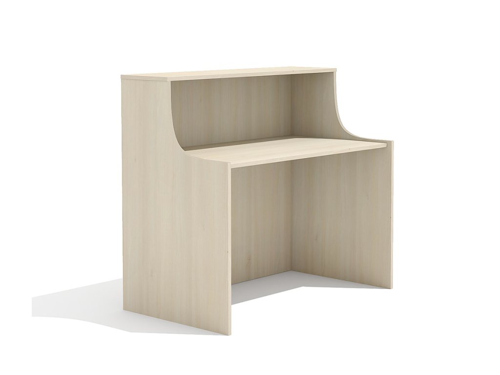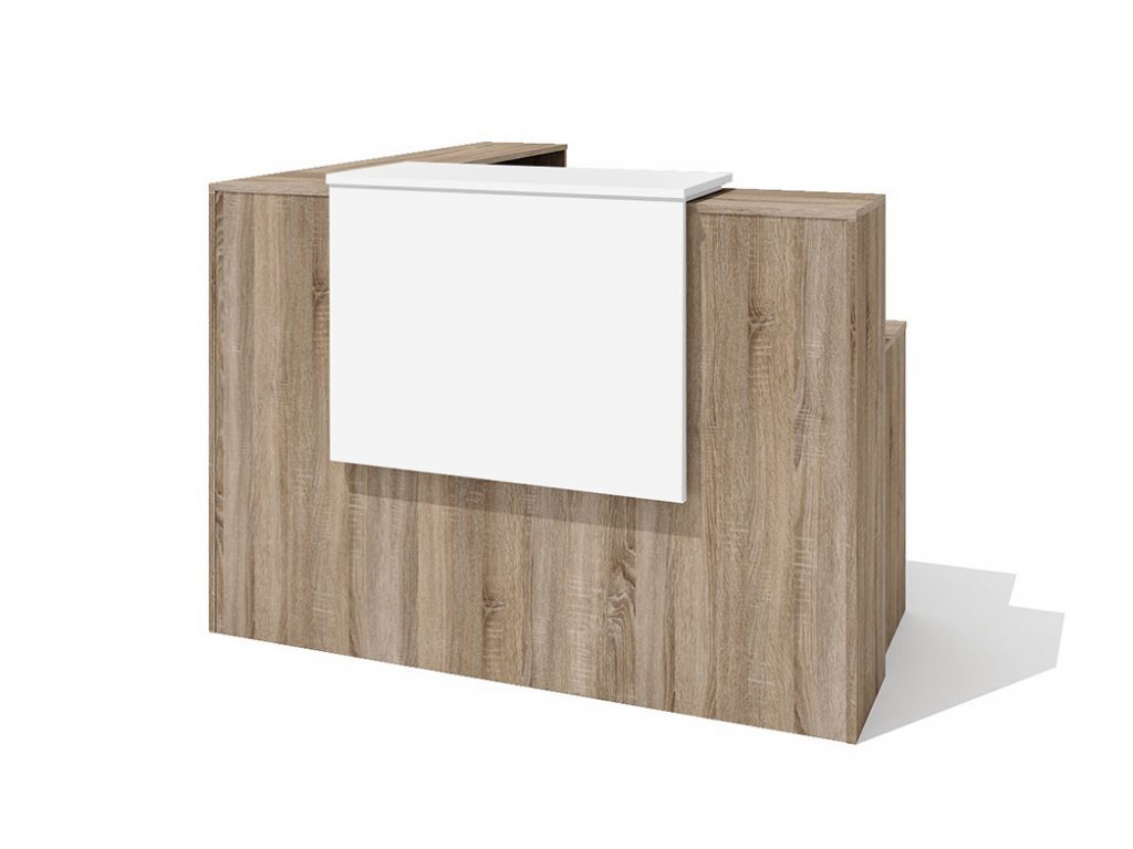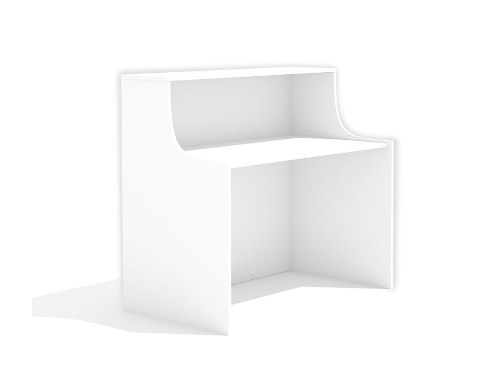 Jednoduchý recepční stůl, který lze, díky svým rozměrům, sestavit s dalšími prvky v moderní recepci.