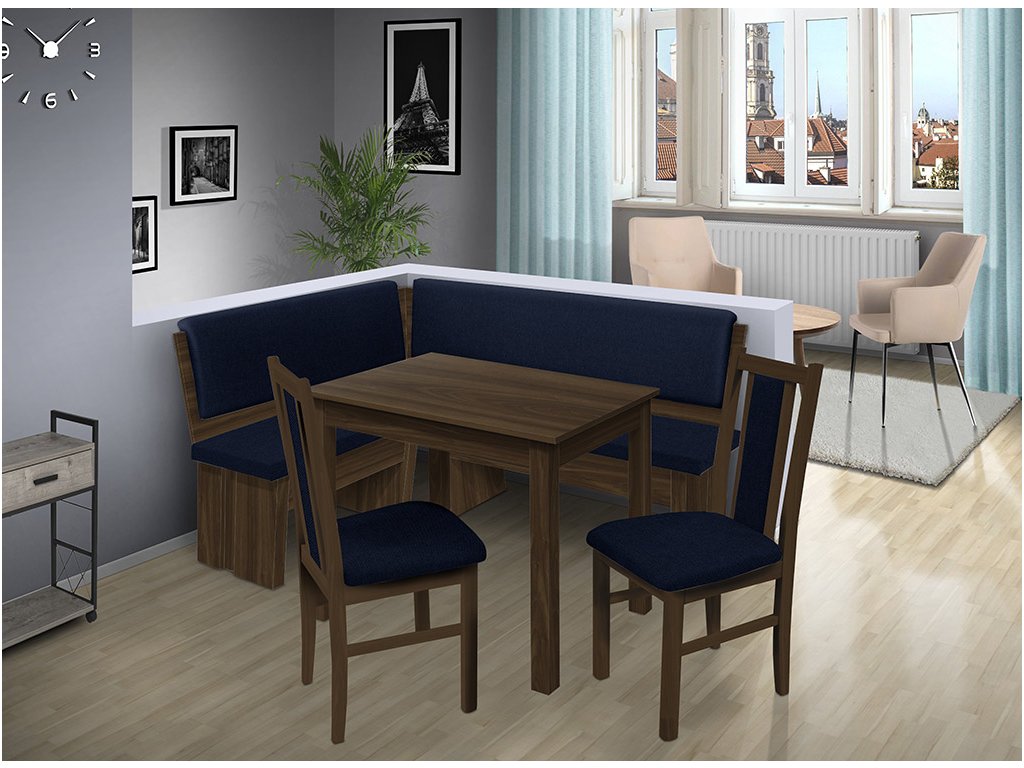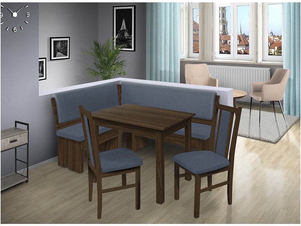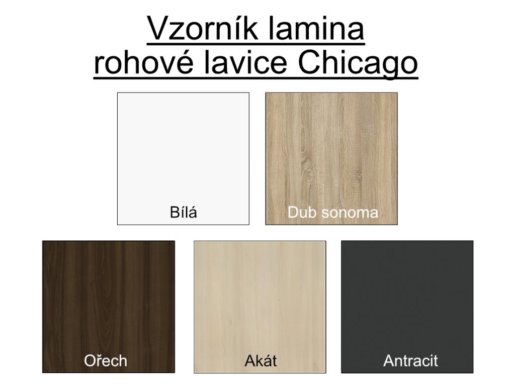 Rohová lavice Chicago je vyrobená z odolného 18 mm lamina, které zajišťuje dlouhou životnost a stabilitu. ABS hrany dodávají celé konstrukci pevnost a odolnost proti poškození. Židle jsou vyrobeny z masivu v odstínu požadovaného lamina. Čalounění je vždy totožné na celém kompletu.