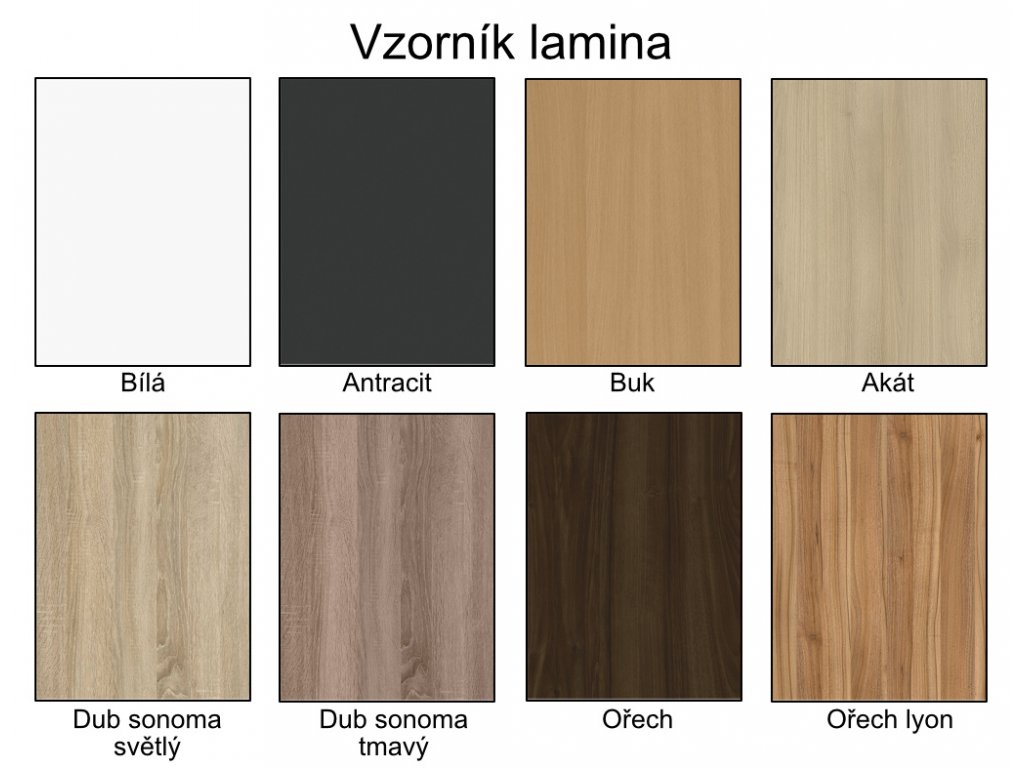 ? Dekor: | akát, antracit, bílá, buk, dub sonoma, ořech, ořech lyon |