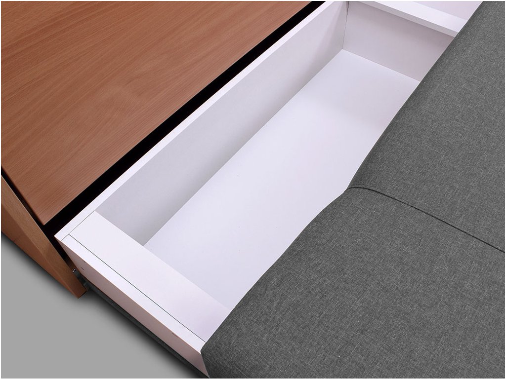 Sklápěcí postel nabízí dostatek úložného prostoru. Veškeré věci si můžete uložit do otevřených polic, peřináče za sedačkou nebo do úložných prostor pod sedací soupravou.