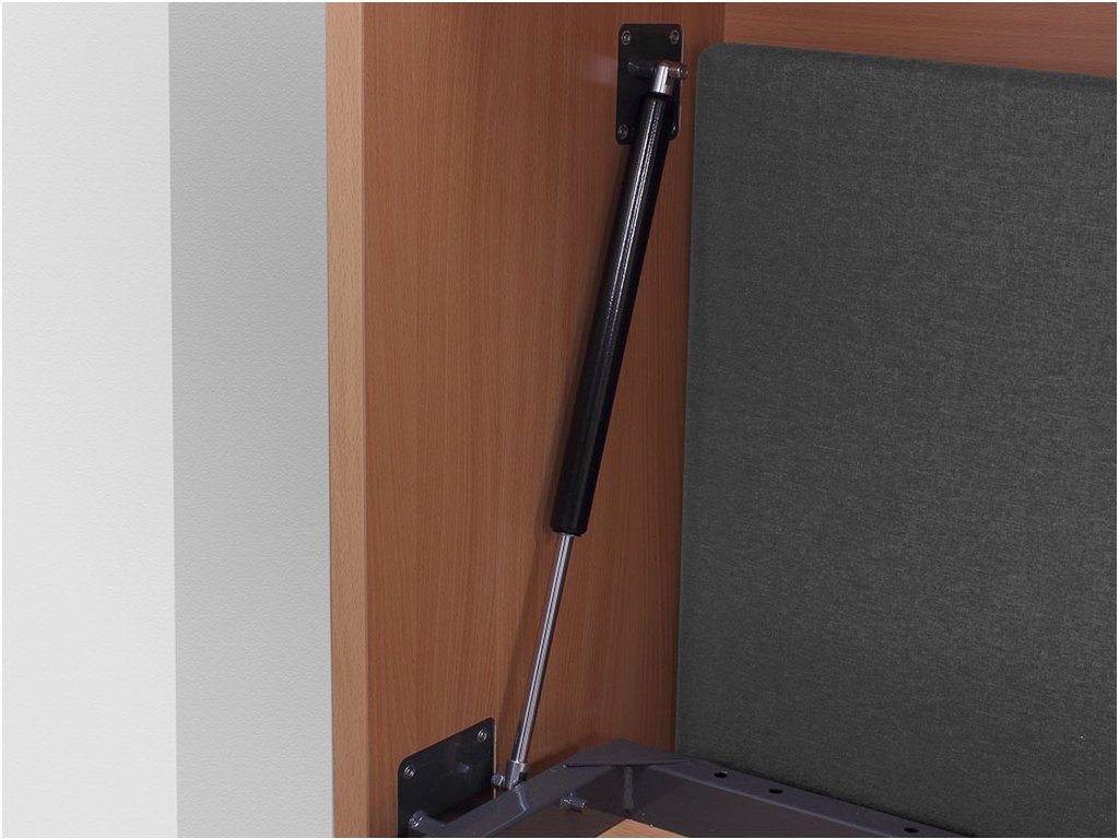 Zavírací mechanismus postele je vybaven silnými plynovými zvedáky s dvojnásobnou regulací zavírací síly, což umožňuje snadné a rychlé sklápění a vyklápění postele. Manipulaci zvládne opravdu každý, bez potřeby extra síly.