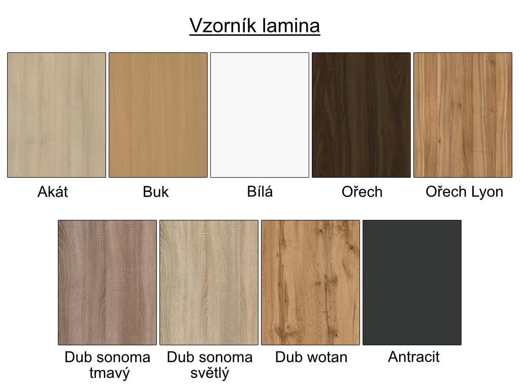 ? Dekor: | akát, antracit, bílá, buk, dub sonoma, ořech, ořech lyon, dub wotan |