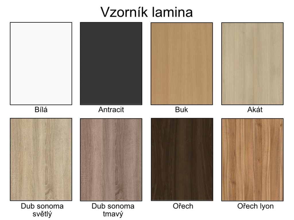 | ? Dekor: | akát, antracit, bílá, buk, dub sonoma, ořech, ořech lyon |
