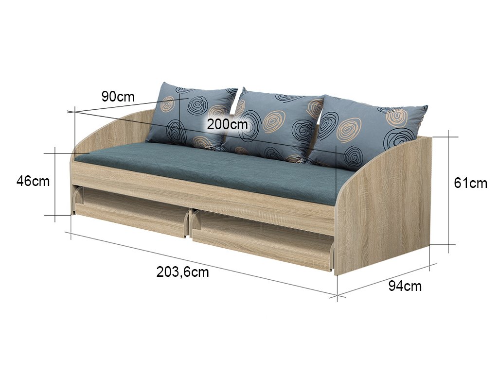 celkový rozměr válendy: 61 x 94 x 203,6 cm (v x š x d)