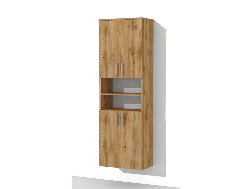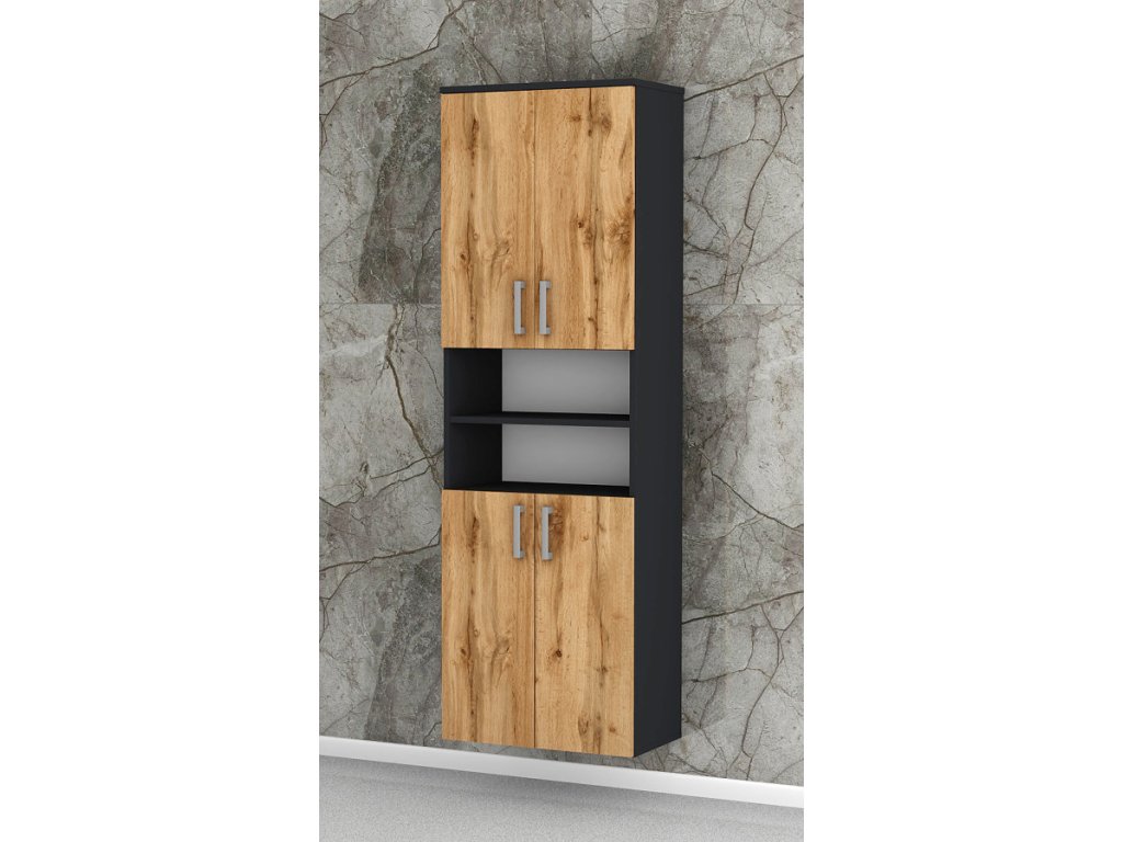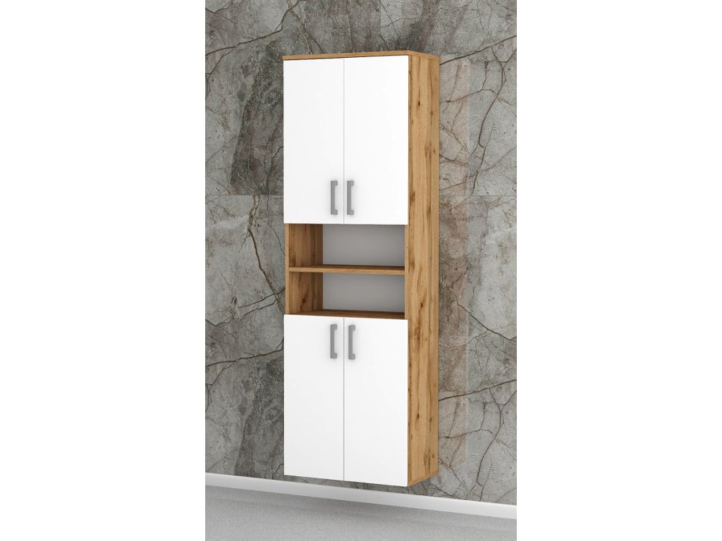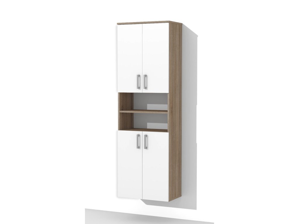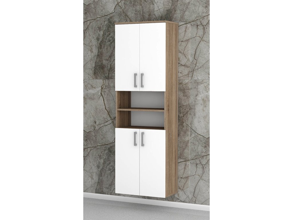 Vysoká koupelnová skříňka s dostatkem úložného prostoru pro veškeré věci, které budete potřebovat uložit ve Vaší koupelně. Koupelnová skříňka disponuje dvěma uzavíratelnými skříňkami, které jsou prakticky rozděleny dvěma otevřenými policemi. Uvnitř každé skříňky jsou stavitelné police - můžete si je snížit nebo zvýšit. Tato vysoká koupelnová skříňka bude pasovat do každé koupelny.
